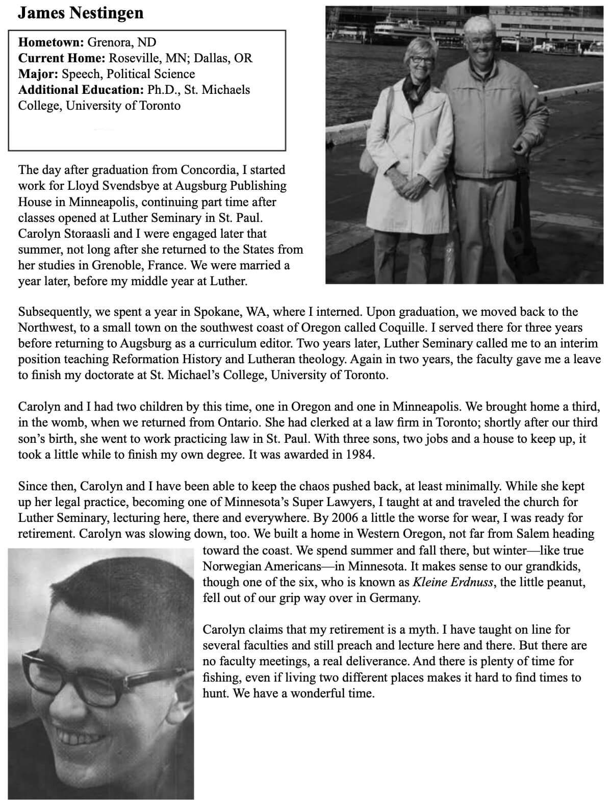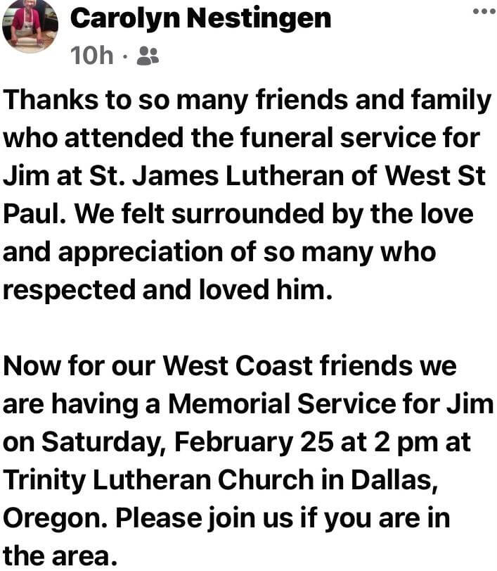 Jim Nestingen Obit ST Services: MN(Family+Cousins) OR NALC Luther Concordia College SIMUL Podcasts Lutheran